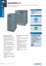 Specially engineered to power and protect typical industrial equipments such as motors, motor speed drivers, lamps, non linear loads, welding equipments, power supplies, MASTERYS IP+ is also perfectly able to supply control equipments like programmable controllers, sensors and measurement apparatus and integrates perfectly into the most demanding industrial environments.