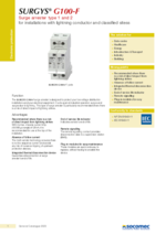 The SURGYS G100-F surge arrester is designed to protect your low voltage distribution installations and your electrical equipment. It acts against industrial operation surges and surges due to lightning. This type of surge arrester is particularly recommended where there is a risk of direct impact of lightning strikes.
