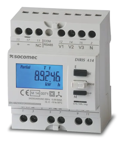 | Description | MID Power monitoring DIRIS A-14 MID DIN-rail mounted with Modbus communication protocols and RS485 communication ports, for measuring electrical values in low voltage networks |