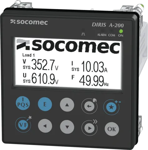 | Description | Power quality meter DIRIS A-200, WEBVIEW web interface RJ12 current sensor, 115-600 VAC power supply with Modbus communication protocols and RS485, dual ethernet communication ports , Solid-core, Split-core or Rogowski coils are compatible |