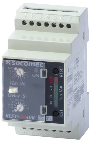 | Description | Type A differential relays for motor load break RESYS M40R 400 VAC 30 mA / 30A combined with a triggered cut-off device, for protect against indirect contact and limit earth leakage currents |